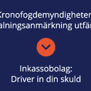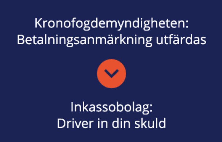 När din skuld överförds till ett inkassobolag skickas åtskilliga påminnelser och inkassokrav. Inkassokraven som inte betalas skickas sedan vidare till Kronofogdemyndigheten. Kronofogdemyndigheten är en statlig myndighet som har i uppdrag att hantera betalningsförelägganden. Med andra ord är det den myndighet som tar hand om ärenden och skulder som inte betalas av privatpersoner och företag i Sverige.