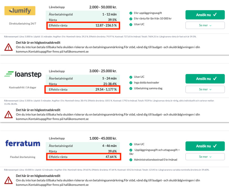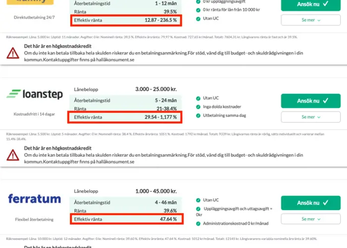När du jämför sms lån på marknaden är det alltså viktigt att du tittar extra noga på räntan (speciellt den effektiva räntan, som visat nedanför), avgifter och inte minst på återbetalningsperioden. Beroende på hur din privatekonomiska situation ser ut kan du välja ett lån med en kortare, eller längre återbetalningsperiod.