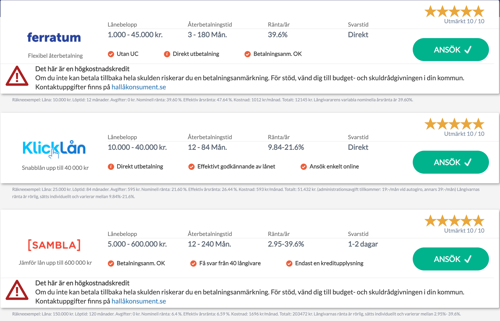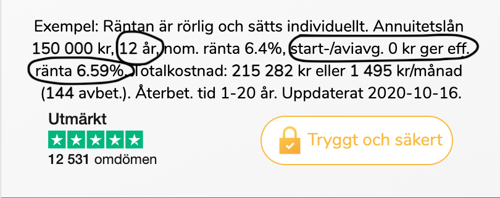 Här ett exempel från Sambla.se, på några av talen som du ska vara uppmärksam på. Låna pengar hos Sambla!